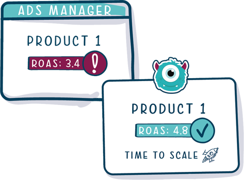 ROAS monster makes sure you get all your orders and metrics in real time. Stop waiting for delayed conversions and set priorities that matter right now.
