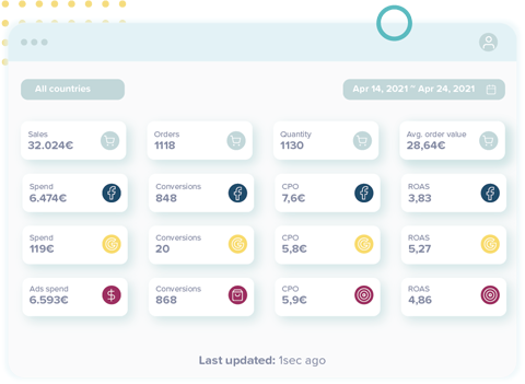 Calculating ROAS and CPO from multiple accounts can be tricky. ROAS monster consolidates your data and serves you bottom-line ROAS and CPO for every product, country or shop.